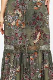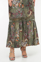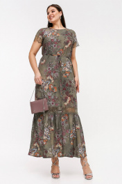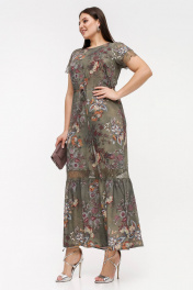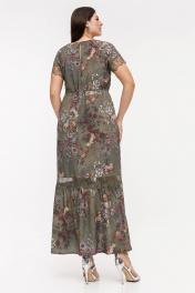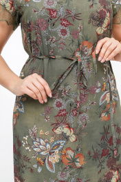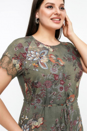 Летнее платье с рукавом-регланом и кружевом из штапеля La rouge 5459 хаки-набивной