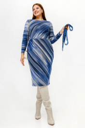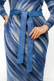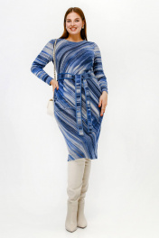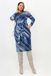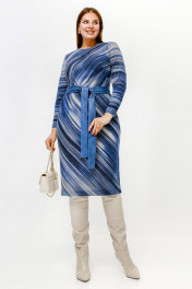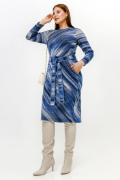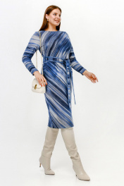Платье полуприлегающего силуэта с нагрудными вытачками и поясом из искусственной ангины La rouge 5474 синий-(полоска)