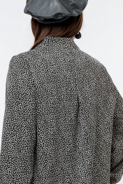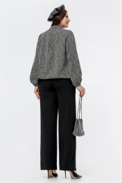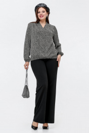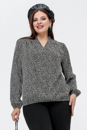 Блуза с кокетками и складками в рубчик для дневного образа La rouge 6268 черно-бежевый-набивной