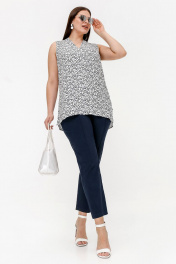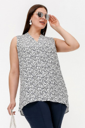 Летняя блузка из набивного штапеля с коротким рукавом La rouge 6271 белый-(веточки)