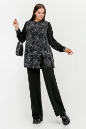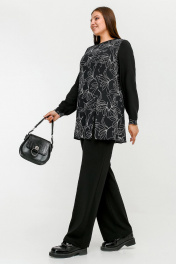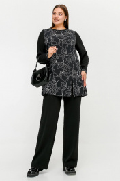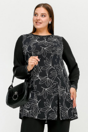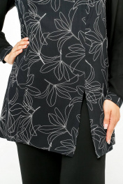 Туника расширенного к низу силуэта с разрезом и рельефами La rouge 9076 черный-(лилии)