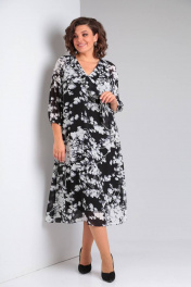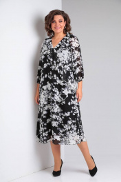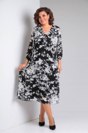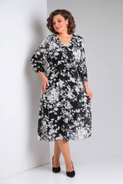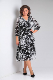 Платье из шифона с воланом и кружевной вставкой LadisLine 1470 веточки