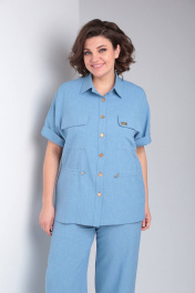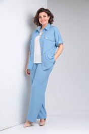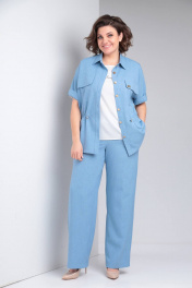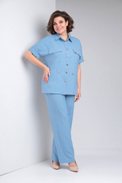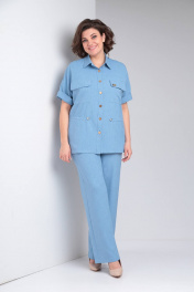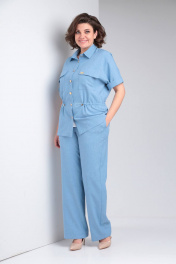 Брюки и рубашка лен-вишер для повседневных образов LadisLine 1497 голубой