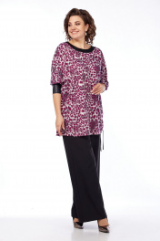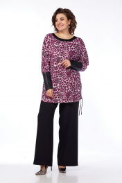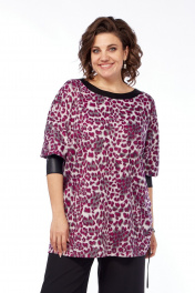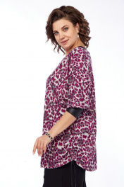 Туника свободного силуэта из трикотажа с экокожей LadisLine 1550 леопард