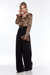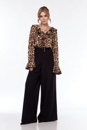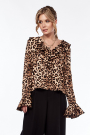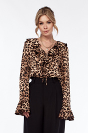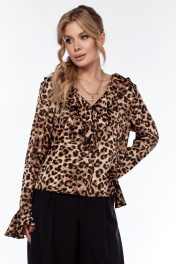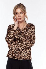 Блуза приталенная с леопардовым принтом и воланом LadisLine 1552 леопард