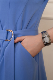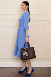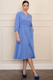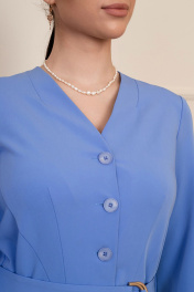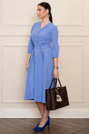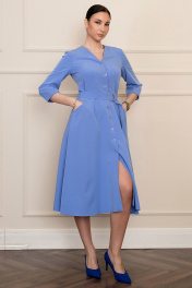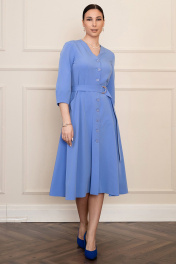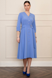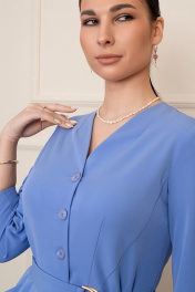 Голубое платье миди с ремнем и V-образным вырезом LADO 6326-9 голубой