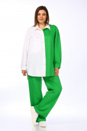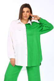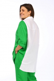 Деловой блузон рубашечного стиля из льна с карманами Lady Secret 081 белый+лайм