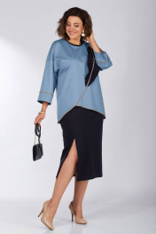 Модный костюм с юбкой и джемпером из трикотажа Lady Secret 1631 синий+синие_тона