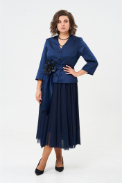 Юбочный нарядный комплект. Жакет выполнен из плотного атласа "Магнус" без подкладки, полуприлегающего силуэта. Рукав 3/4, пояс с декоративным съемным цветком в комплекте. Юбка из сетки-фатин на поясе с эластичной лентой, на подкладке. Длина жакета-57см. Длина рукава жакета-49см. Длина юбки-81см.