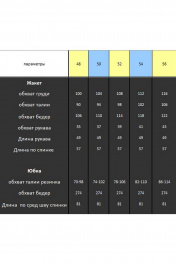Жакет: ПЭ 97,4%, спандекс 2,6%, юбка ПЭ 95%, спандекс 5%