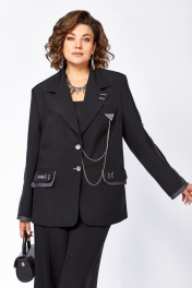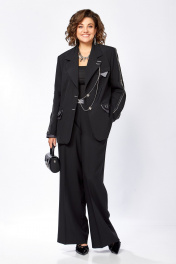 Тренд сезона! Брючный костюм в современном, слегка дерзком стиле. Удлиненный однобортный Жакет свободного классического кроя на подкладке ,с подвесными декоративными элементами-металическими цепочками , молниями на рукавах ,карманами с двойным клапоном , нагрудной листочкой , а отделка из множество контрастных глазковых петель ,креативное решение для мульти использования сьемного декора. Жакет придает образу строгий, но в то же время модный характер. Брюки свободного силуэта ,средней посадки, с боковыми карманами ,на эластичном поясе, что обеспечивает максимальную комфортной носки в течении всего дня . В целом костюм сочетает в себе элементы уличного и делового стиля без использования строгого дресс-кода, наш костюм -идеальная база для создания образа стильной, уверенной и немного роковой женщины .