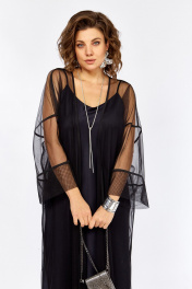 Изысканный комплект сочетает в себе платье из плотного атласа, свободного А образного силуэта , на Тонких бретелях и воздушную кардиган-шазюбль из сетки создавая образ утончённой элегантности женственности Это идеальный выбор для вечерних мероприятий , когда хочется выглядеть выразительно , но сдержанно и благородно .