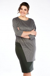 Круглогодичный костюм джемпер и юбка из текстиля и трикотажа Lady Style Classic 1516/3 хаки