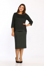 Костюм из трикотажа с юбкой с разрезом и нагрудными вытачками Lady Style Classic 1656 хаки