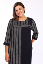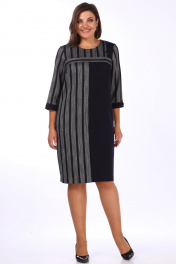 Платье с кокеткой, отделочной тесьмой и разрезами Lady Style Classic 1676 темно-синий_серый