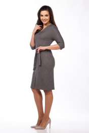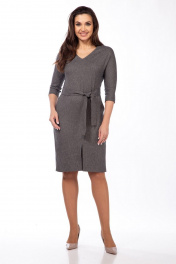 Платье с V-вырезом и съемным поясом из текстиля Lady Style Classic 1682/1 серые_тона
