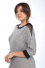 Платье трикотажное прямого силуэта с рельефами и гипюром Lady Style Classic 1711 серый_с_черным