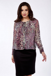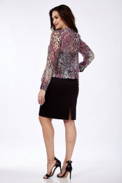 Платье полуприлегающего силуэта с круглым вырезом горловины, отрезное ниже линии талии. Лиф на трикотажной подкладке. Перед состоит из 2 частей (верхний и нижний). Нижняя деталь с нагрудными выточками, с центральной бортовой застёжкой на петли и пуговицы. Верхняя деталь отдельная. Юбка с разрезом в среднем шве. Рукавав втачные, одношовные, с манжетой застёжкой на петли и пуговицы. Размеры 46-50: длина рукава 62 см, длина платья 101 см.