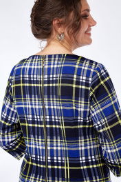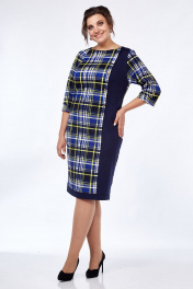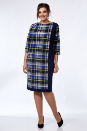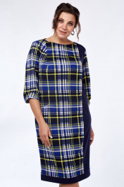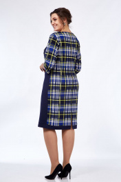 Демисезонное платье из трикотажа с рельефами и разрезом Lady Style Classic 955/7 синий_желтый