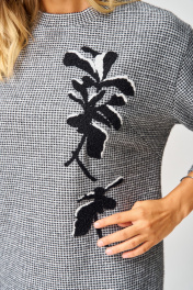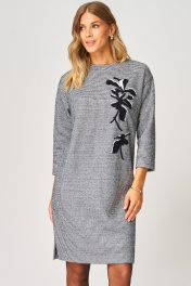 Трикотажное платье от LAIKONY прямого силуэта длиной мини. Вырез горловины округлой формы с втачной бейкой. Деталь переда с нагрудными вытачками, вверху нанесена аппликация-вышивка. Спинка цельная. Рукава втачные одношовные, длиной 3/4, линия плеча спущена. В боковых швах обработаны карманы и разрезы. Трикотаж средней плотности, хорошо тянется. Декор может отличаться от представленного на фотографии. Уютное повседневное платье для осенне-зимнего сезона.