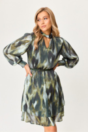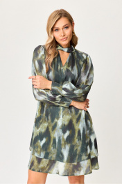 Платье двухъярусное шифоновое с сборками и стойкой Laikony L-212 малахит_ новый