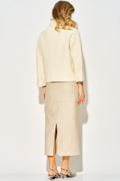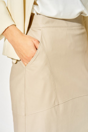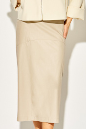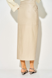 Стильная юбка из экокожи от LAIKONY длиной миди. Юбка плотно облегающая вверху и прямая к низу. Застежка на тесьму-молнию и 1 кнопку. Переднее полотнище юбки со средним швом и асимметричным горизонтальным подрезом. В верхней части юбки обработаны карманы фигурной формы, нижняя часть с рельефными складками. Заднее полотнище юбки с вытачками, асимметричным подрезом и средним швом, который заканчивается разрезом. По поясу юбки прикреплены шлевки. Юбка выполнена из экокожи на хлопковой основе. Ткань не тянется. Длина изделия по спинке 82 см. Шикарная юбка для офиса и повседневного использования. Образы на фото с нашим топом L-037-3, жакетом из костюмной ткани L-514 и жакетом L-514 из вельвета.