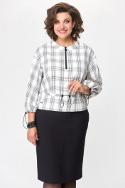 Платье женское полуприлегающего силуэта ( имитация блузка-юбка). Горловина округлая со стойкой и декоративной функциональной молнией. Рукав спущенный. По талии и низу рукава- сборка, которая регулируется кулисой. Сзади - разрез.