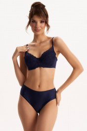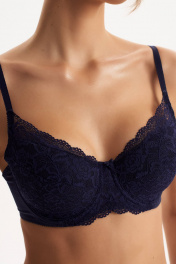 Бюстгальтер из эластичного кружева и эластичного трикотажного полотна на среднюю размерную группу. Чашка выполнена из дубляжа, присутствуют каркасы («косточки»).