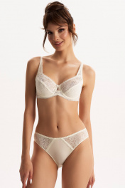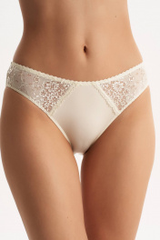 Трусы - слипы со средней линией талии. Выполнены из эластичного трикотажного полотна (микрофибра). По бокам вставки из кружева. Подкладка ластовицы из 100% х/б.