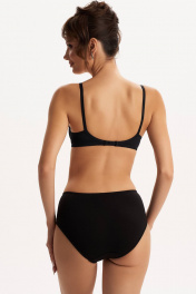 Бюстгальтер с мягкой чашкой, выполненный из эластичного трикотажного полотна и декорированный вышивкой. Есть боковая поддерживающая деталь, обеспечивающая дополнительное приподнимание груди. В модели присутствуют каркасы ("косточки"). Бретели регулируются по длине. Ширина бретелей увеличивается пропорционально увеличению размера (1,0 см, 1,5 см, 2,0 см, 2,5 см).