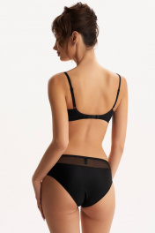 Бюстгальтер с мягкой чашкой, выполненный из эластичного трикотажного полотна и декорированный эластичным кружевом в верхней части чашки. В модели присутствуют каркасы ("косточки"). Бретели регулируются по длине. Ширина бретелей увеличивается пропорционально увеличению размера (1,0 см, 1,5 см, 2,0 см, 2,5 см). В самых маленьких размерах застежка на 1 крючок из двух позиций, в большинстве размеров застежка на 2 крючка из трех позиций; в больших размерах на 3 крючка с выбором из трех позиций. Важная особенность – тройное членение чашки, что обеспечивает скругление формы груди.