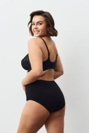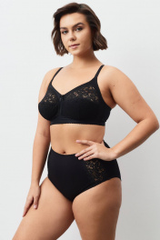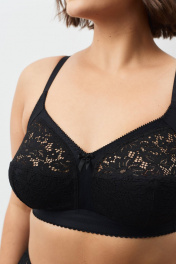Бюстгальтер бескаркасный, декорированный кружевом по всей чашке, внутри чашки - вставка из хлопка, которая приятна к телу и не вызовет раздражения. Боковая деталь, широкие бретели и бочки обеспечивают отличную поддержку, а также равномерно распределяют вес груди, что крайне важно, особенно при очень больших размерах. Модель идеально подойдёт для повседневной носки.
