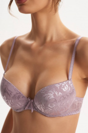 Бюстгальтер из эластичного трикотажного волокна (микрофибра). Формованная чашка (минимальный эффект «пуш-ап» каплевидной формы, расположенный в нижней части чашки) в модели присутствуют каркасы. В качестве декоративного элемента присутствует маленький бантик спереди по центру изделия. Бретели регулируются по длине, но не отстегиваются.