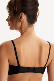 Бюстгальтер «балконет» формованный (без эффекта «пуш-ап»). Чашка декорирована эластичным кружевом. В модели присутствуют каркасы («косточки»). Бочки из эластичного трикотажного полотна (микрофибра) наполовину кружевные. Бретели съёмные, регулируются по длине.