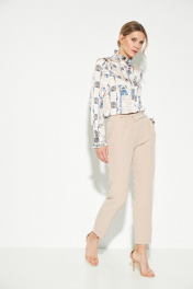 Бежевые узкие брюки с широким поясом и карманами LIBERTY 34