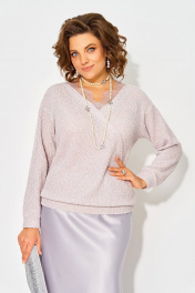 Вязанный жемчужно-лиловый джемпер с ажуром по вороту - это идеальный вариант для создания стильного и привлекательного романтического образа! Мягкий и нежный материал этого джемпера делает его очень приятным на ощупь, теплым и уютным, а легкое мерцание придает свою изюминку. Горловина v-образной формы приковывает взгляды к линии декольте. Рукав длинный, на спущенной линии плеча. Низ рукава, а также низ изделия оформлен мягкой трикотажной манжетой. Особенно актуальна данная кофточка на осенний и зимний период, за счет качественного состава, не пропускает холод обеспечивает тепло и комфорт! Длина по спинке – 65 см, рукав – 62 см.