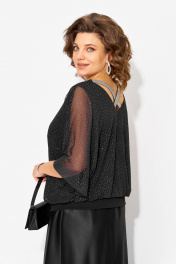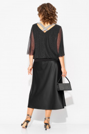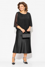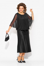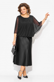 Эта модная женская блуза отличается уникальным стилем бохо и нарядным настроением, а прозрачный рукав с мерцающим эффектом добавляет легкости и особого шарма. Объемный цельнокроеный рукав делают ваш наряд эффектным, женственным и привлекательным. Округлый вырез горловины по полочке заложен в мягкие складки. Низ присборен и оформлен мягкой трикотажной притачной планкой. Подкладка выполнена из мягкого трикотажа, садится точно по фигуре. Изюминкой данной модели служит эффектный вырез на спине с декоративной резинкой с мерцающим эффектом. В комплекте юбка длиной миди, выполнена из атласного сатина, на трикотажной подкладке. Модель за счет выверенного кроя по-косой смотрится роскошно и элегантно. Пояс на круговой резинке обеспечивает 100% посадку по фигуре. Юбка – 88 см.