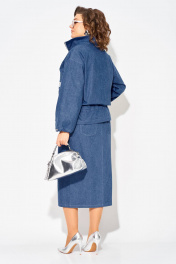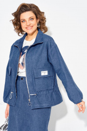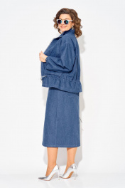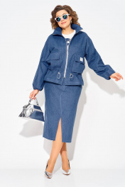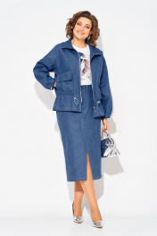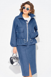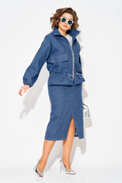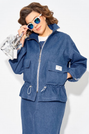 Модный и стильный юбочный женский костюм из денима с жакетом и юбкой — идеальный выбор для создания стильного образа! Жакет свободного силуэта, по типу «джинсовки» с застежкой на молнию. Воротник-стойка, комфортно прилегает к горловине. Рукав длинный, на спущенном плечевом поясе. Низ рукава оформлен на кулиску. Полочка с накладными карманами с клапаном. Чуть ниже талии предусмотрена кулиска для комфортного и более плотного прилегания. Юбка в костюме длиной миди, слегка заужена к низу. Застежка-брючная тесьма-молния с обработанным гульфиком. Пояс притачной, в боковых участках вставлена резинка. В юбке предусмотрены боковые карманы, а также накладные карманы сзади. Фигурный разрез по центру привлекает внимание окружающих! Джинсовый материал обеспечивает комфорт и свободу движений, а также позволяет коже дышать, что делает этот комплект подходящим для любого сезона. Вы можете носить костюм с топом под рубашку, а также комбинировать с другими предметами одежды из Вашего гардероба и носить предметы набора по отдельности - юбку с пиджаком, а рубашку с брюками ! Длина джинсовки – 62 см, рукав – около 62 см. Юбка – 80 см.