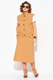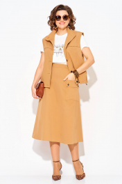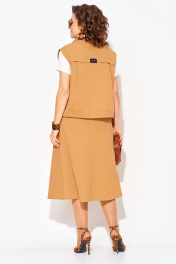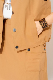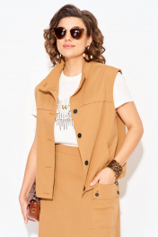 Модный женский костюм из джинсы идеально подойдет для создания стильного образа. Этот костюм включает жилетку в стиле оверсайз на юбку-А-силуэта, что делает его универсальным вариантом для повседневных прогулок! Жилетка на шелковой подкладке с боковыми карманами в рельефах. Воротник стойка с центральной застежкой на петли и пуговицы с подбортом. Низ жилетки можно присборить на кулиску. Юбка в костюме на притачном поясе, в боковых участках вставлена резинка. Юбка с накладными карманами; застежка молния в среднем шве спинки. Джинсовый костюм с юбкой — это универсальная одежда для повседневной жизни, отдыха и прогулок. Он подходит для женщин разных возрастов и типов фигур, позволяя каждой представительнице прекрасного пола выглядеть стильно и чувствовать себя уверенно. Длина жилетки – 60 см, юбка – 80 см.