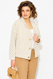 Трикотажный кардиган с эффектным принтом – отличный выбор для повседневной одежды в офис и для особого случая. Модель выполнена из мягкого материала, который приятно ощущается на теле. Укороченный фасон, присборен по низу на резинку, придает пикантность образу. Воротник отложной по типу шали. По полочке расположены прорезные карманы. Металлические пришивные кнопки служат не только функциональным элементом застежки, но и подчеркивают аккуратность изделия. Короткий кардиган оверсайз в стиле old money разработан с учетом особенностей: он хорошо сидит по фигуре, не стесняет движений. Отлично сочетается с базовыми брюками из коллекции от бренда «Лилиана». Длина по спинке – 58-60 см. Рукав – 62 см.