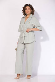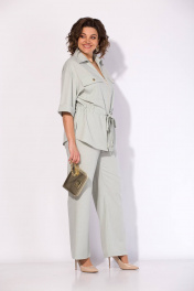 Эффектный женский костюм с брюками палаццо и свободным блузоном - это воплощение комфорта и актуального стиля! Модель выполнена из качественного легкого вискозного материала, с добавлением льна. Модный блузон-жакет с коротким рукавом, дополнен металлической молнией и стильными накладными карманами с клапаном. V-образный вырез горловины оформлен отложным воротником. Регулируемая кулиска с поясом-завязкой позволяет акцентировать внимание на талии или оставить силуэт более свободным. Брюки палаццо с широкими штанинами и высокой посадкой с боковыми карманами. Мягкая круговая резинка на поясе обеспечивает идеальное прилегание, не сковывая движений. Этот костюм-двойка — настоящий тренд, вдохновленный эстетикой pinterest (пинтерест). Блузон – 70 см, рукав – 40%. Брюки -104 см.