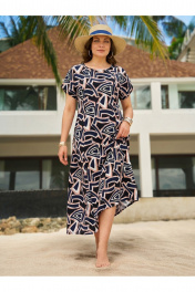 Модель летнего платья с продольными рельефами по полочке и спинке. Вырез горловины округлый. Рукав цельнокроеный слегка спущенный. По переду платья предусмотрены разрезы. Спинка с резинкой для более комфортного облегания. Это идеальный выбор для современной женщины, которая ценит комфорт, стиль и универсальность в себе! Длина платья – 130 см.