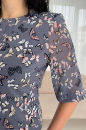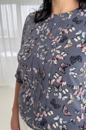 Блуза свободного кроя из вискозы и льна для демисезона LindaLux 217 бабочки