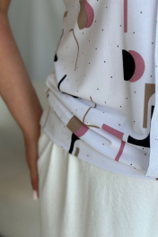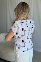 Демисезонная белая блуза из вискозы и трикотажа для повседневного стиля LindaLux 217/2 геометрия