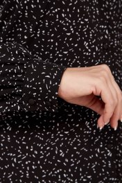 Женская текстильная блузка прямого силуэта на рост 164см. Рукав втачной длинный. Внизу со сборкой и манжетой с застежкой на пуговки. Вырез горловины круглый с обтачкой. Нагрудные вытачки из проймы. Застежка центральная на петли и пуговицы.