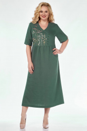 Платье удлиненное летнее из льна с вышивкой и расширением к низу Линия Л Б-2011 темная_мята