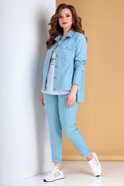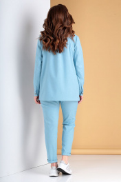 Комплект женский 2-х предметный: брюки и куртка. Размеры 50,52,54. Куртка свободного кроя. Рукав втачной двух-шовный, низ рукава на притачной манжете с застёжкой на петлю и пуговицу. Воротник рубашечного типа на отрезной стойке. По переду накладные функциональные карманы с клапаном. По спинке отрезная кокетка. Спинка куртки длиннее чем перед. Брюки зауженные к низу. Верхний край брюк на притачном поясе, по спинке от боковых швов на резинке. Застежка брюк спереди по типу «гульфик». На задних половинках брюк накладные карманы, спереди карманы «хулиганы». Длина брюк по боковому шву: 102 см. Длина куртки по центру переда: 56 см. Длина куртки по центру спинки: 73 см. Длина рукава: 63 см.