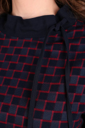 Комплект женский 2-х предметный: блузон и брюки. Стильный женский костюм состоит из блузона и брюк. Блузон прямого силуэта с боковыми разрезами. Горловина блузона обработана притачной стойкой, которая присборивается на шнур. По переду блузона накладные карманы. Рукав втачной двух шовный. По низу рукава шлица. Брюки зауженные к низу. На передних половинках брюк боковые карманы «хулиганы». Верхний срез брюк на притачном поясе на резинке с тесьмой. Длина блузона по середине спинки: 67 см. Длина рукава: 60 см. Длина брюк по боковому шву: 103 см.