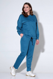 Костюм джемпер и брюки с накладными карманами спортивный Liona Style 822 синий