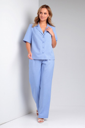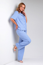 Брюки и жакет прямого силуэта из ленового текстиля для повседневности Liona Style 857 голубой